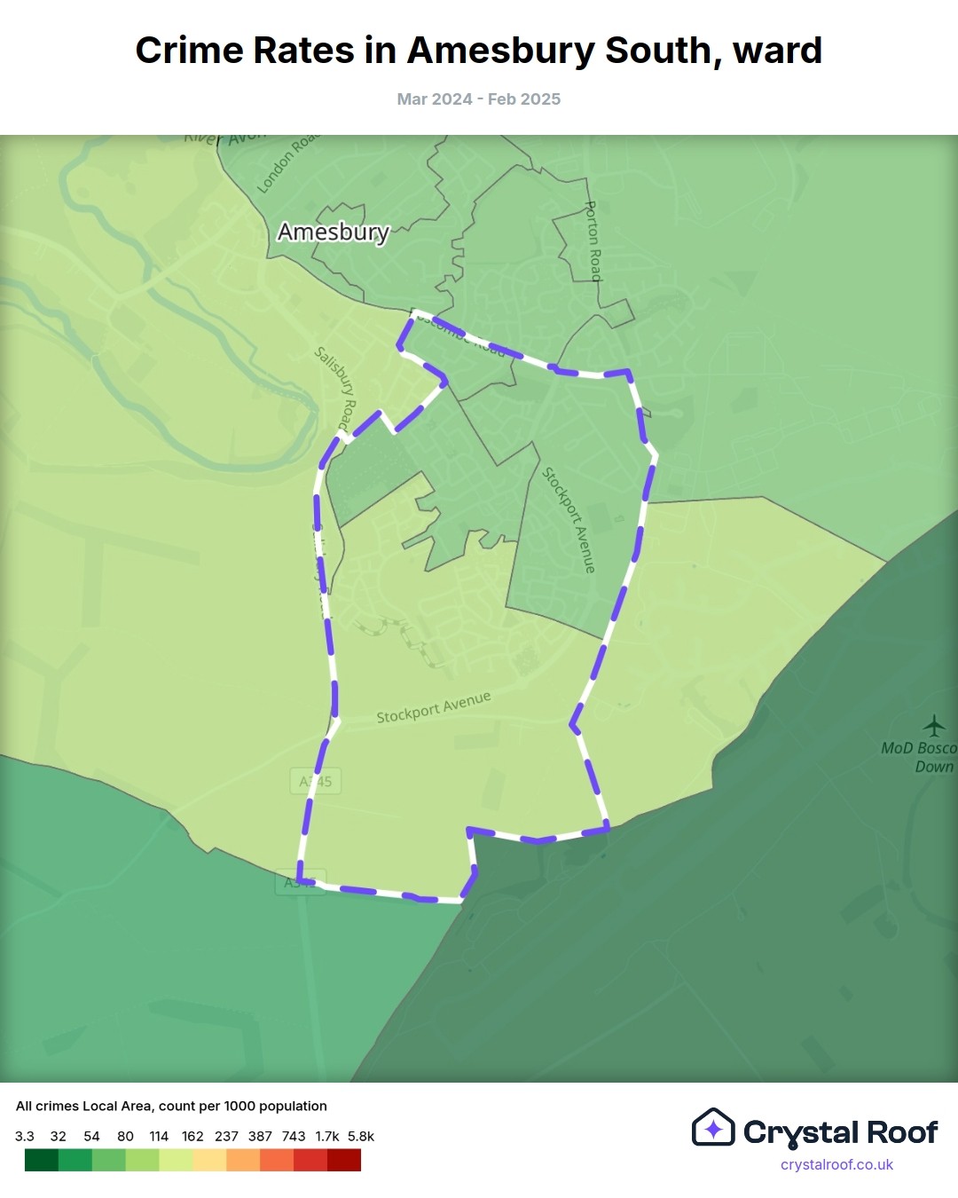 Amesbury South, (ward) includes areas with the following crime ratings (see map):