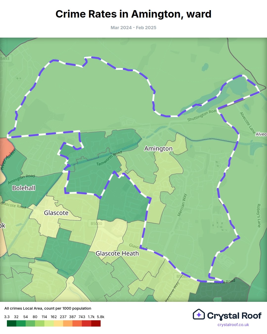 Amington, (ward) includes areas with the following crime ratings (see map):