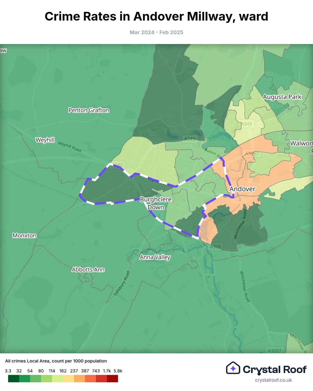 Andover Millway, (ward) includes areas with the following crime ratings (see map):
