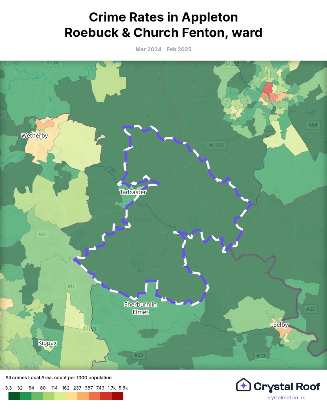 Appleton Roebuck & Church Fenton, (ward) includes areas with the following crime ratings (see map):