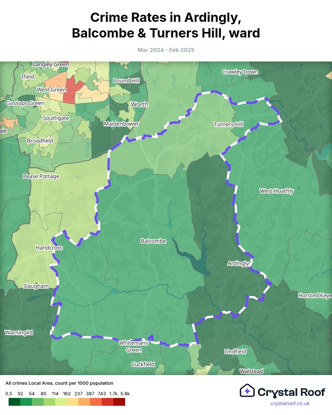 Ardingly, Balcombe & Turners Hill, (ward) includes areas with the following crime ratings (see map):