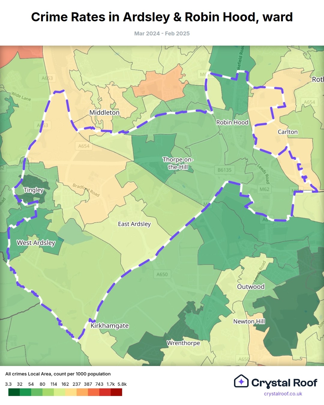 Ardsley & Robin Hood, (ward) includes areas with the following crime ratings (see map):