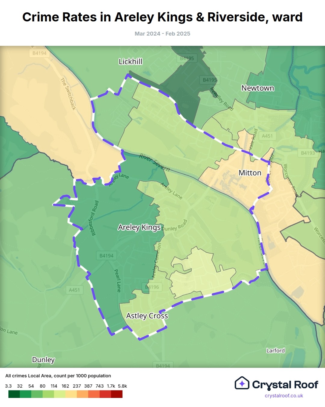 Areley Kings & Riverside, (ward) includes areas with the following crime ratings (see map):
