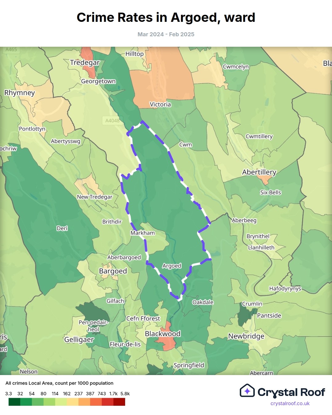 Argoed, (ward) includes areas with the following crime ratings (see map):