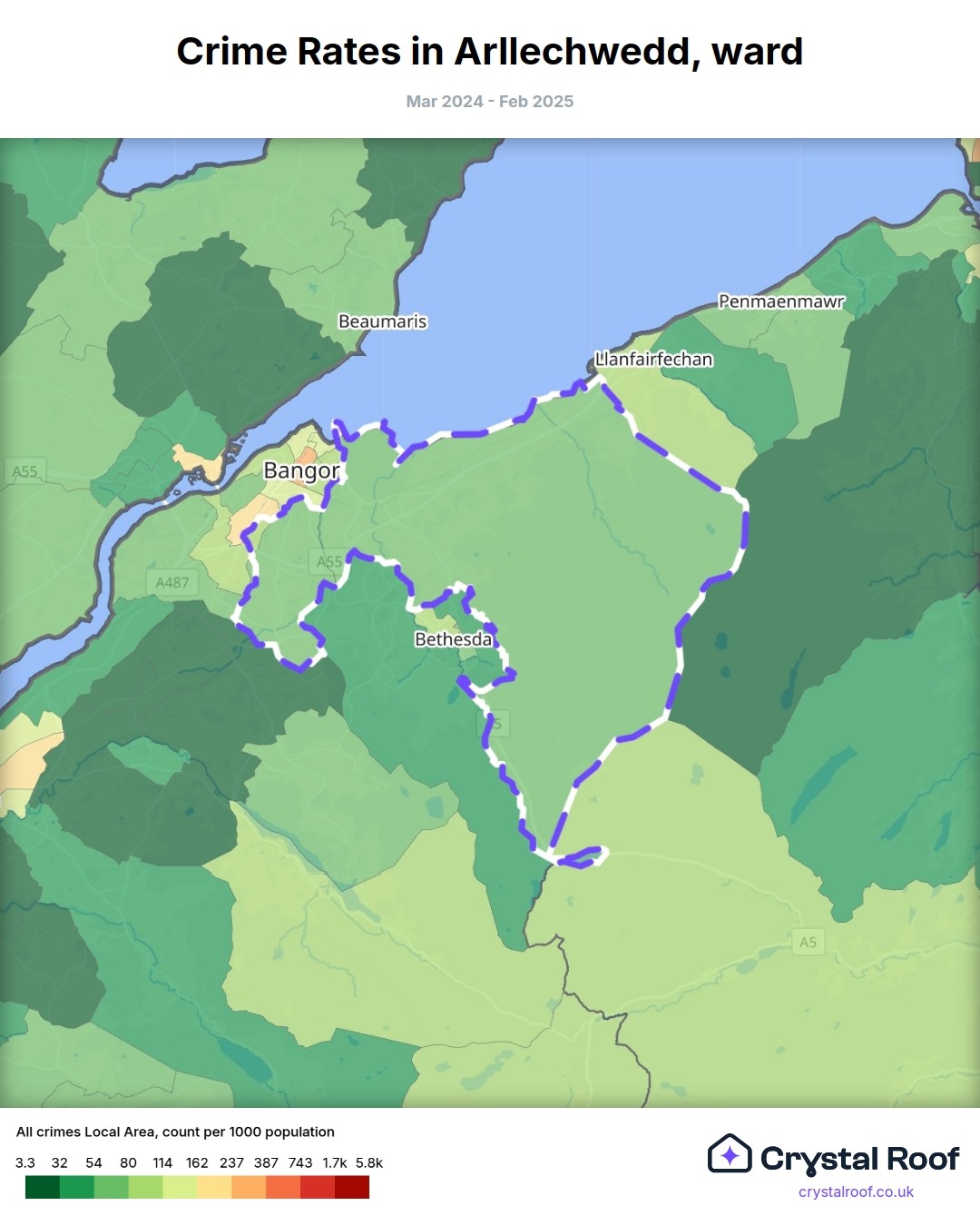Arllechwedd, (ward) includes areas with the following crime ratings (see map):