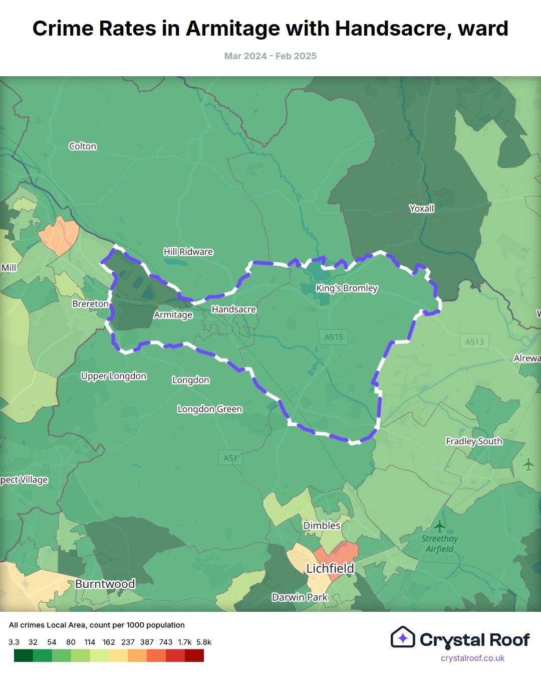 Armitage with Handsacre, (ward) includes areas with the following crime ratings (see map):
