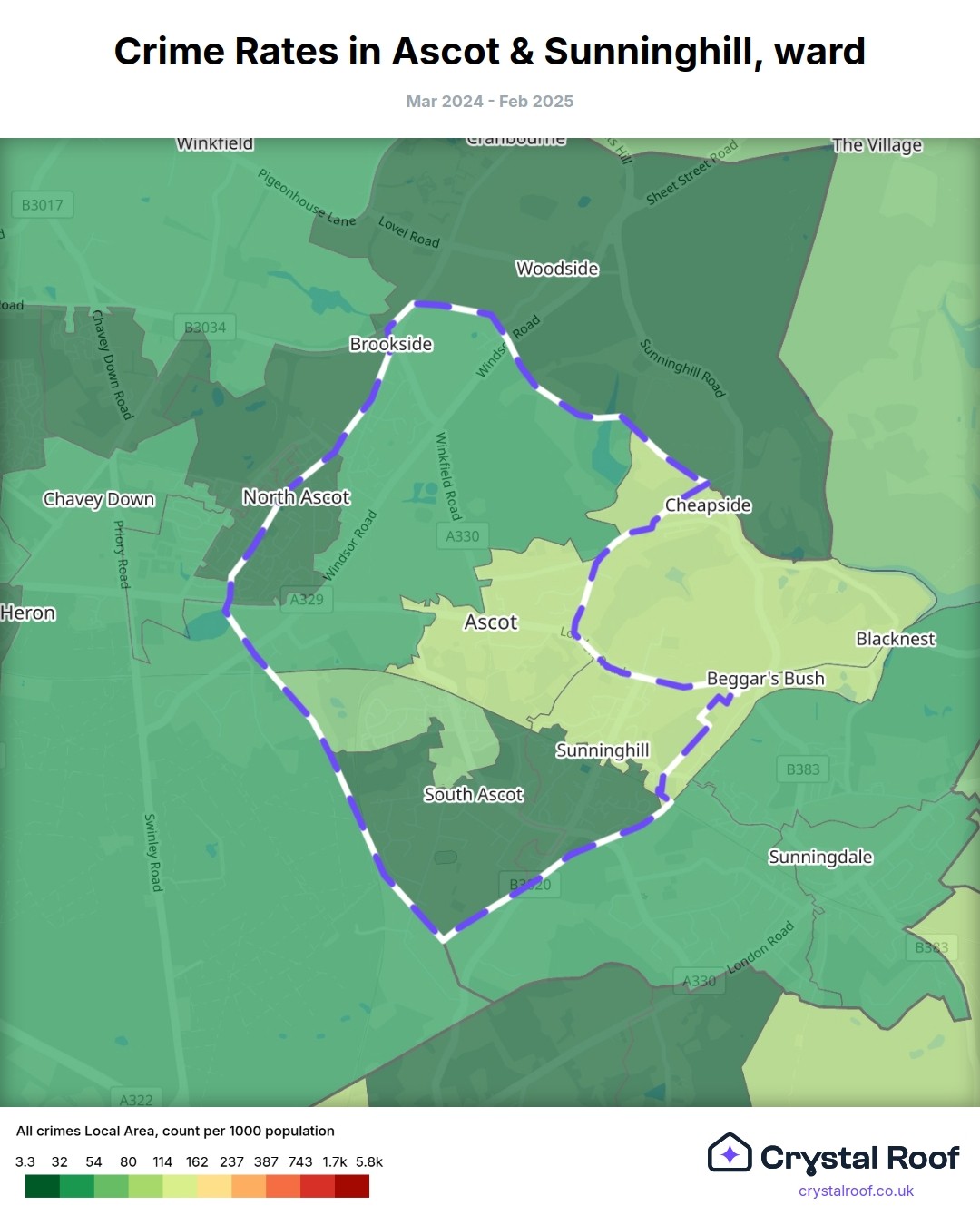 Ascot & Sunninghill, (ward) includes areas with the following crime ratings (see map):