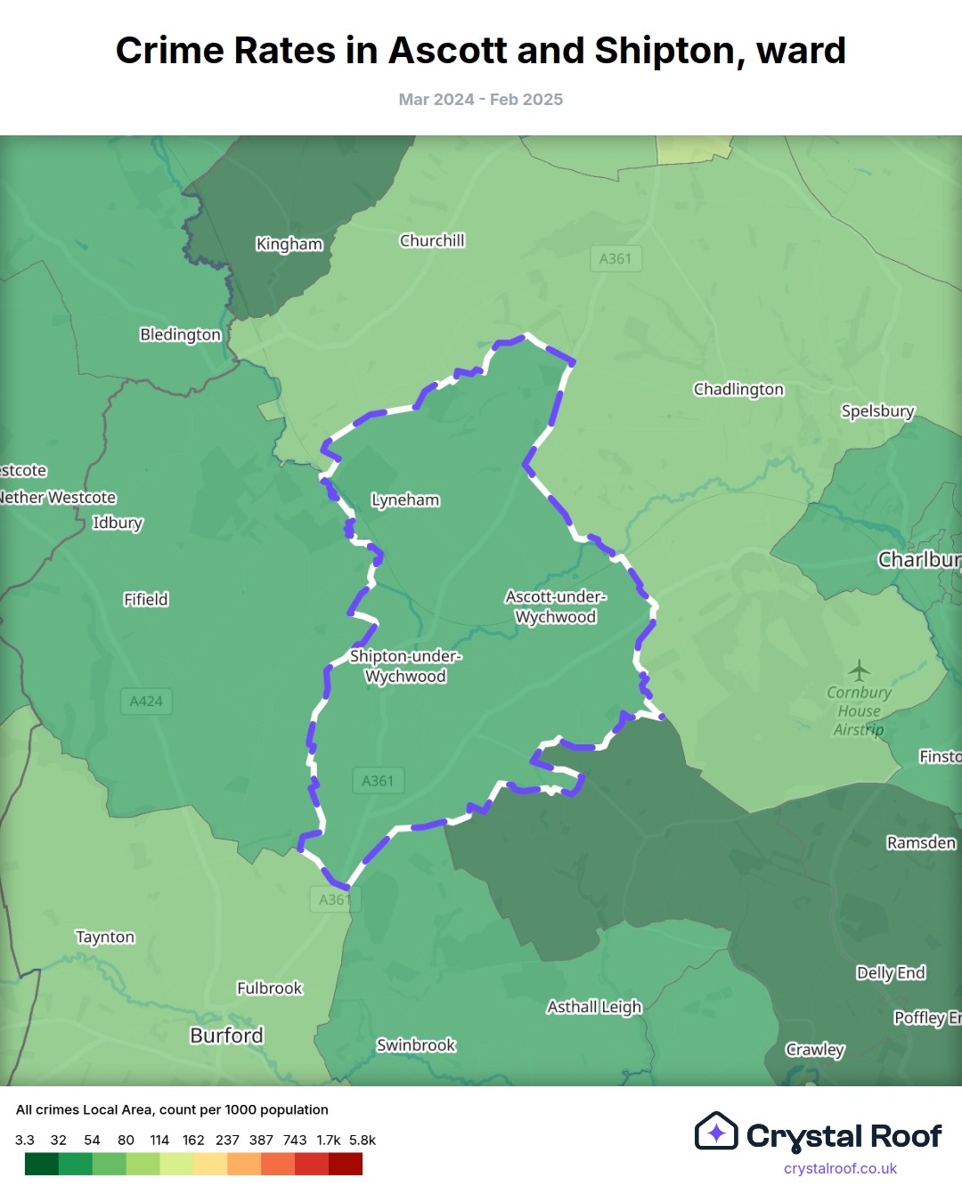 Ascott and Shipton, (ward) includes areas with the following crime ratings (see map):