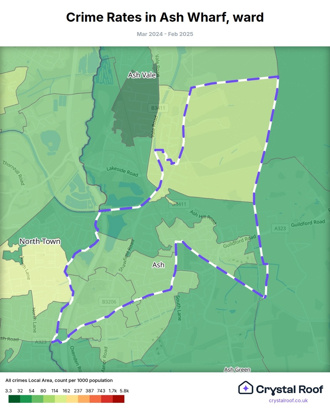 Ash Wharf, (ward) includes areas with the following crime ratings (see map):