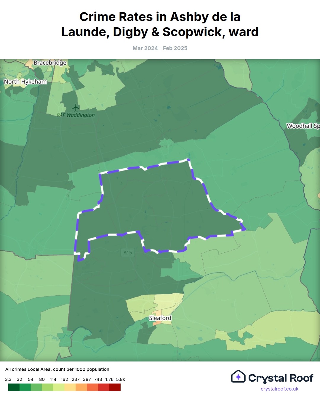 Ashby de la Launde, Digby & Scopwick, (ward) includes areas with the following crime ratings (see map):