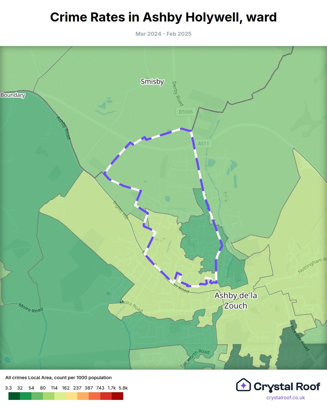 Ashby Holywell, (ward) includes areas with the following crime ratings (see map):