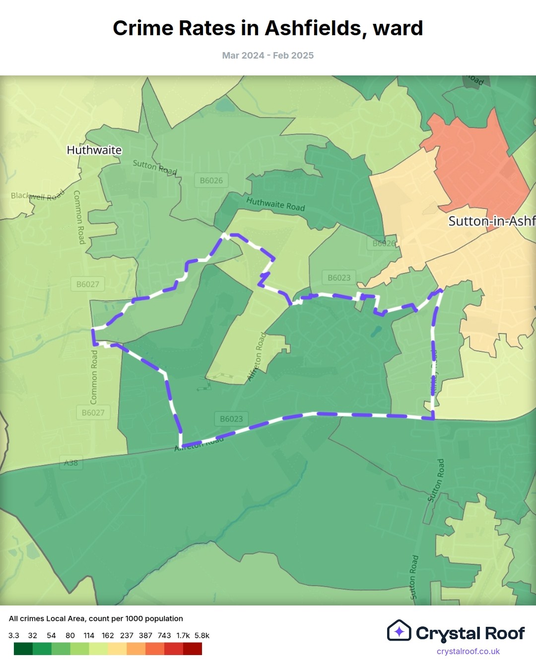 Ashfields, (ward) includes areas with the following crime ratings (see map):