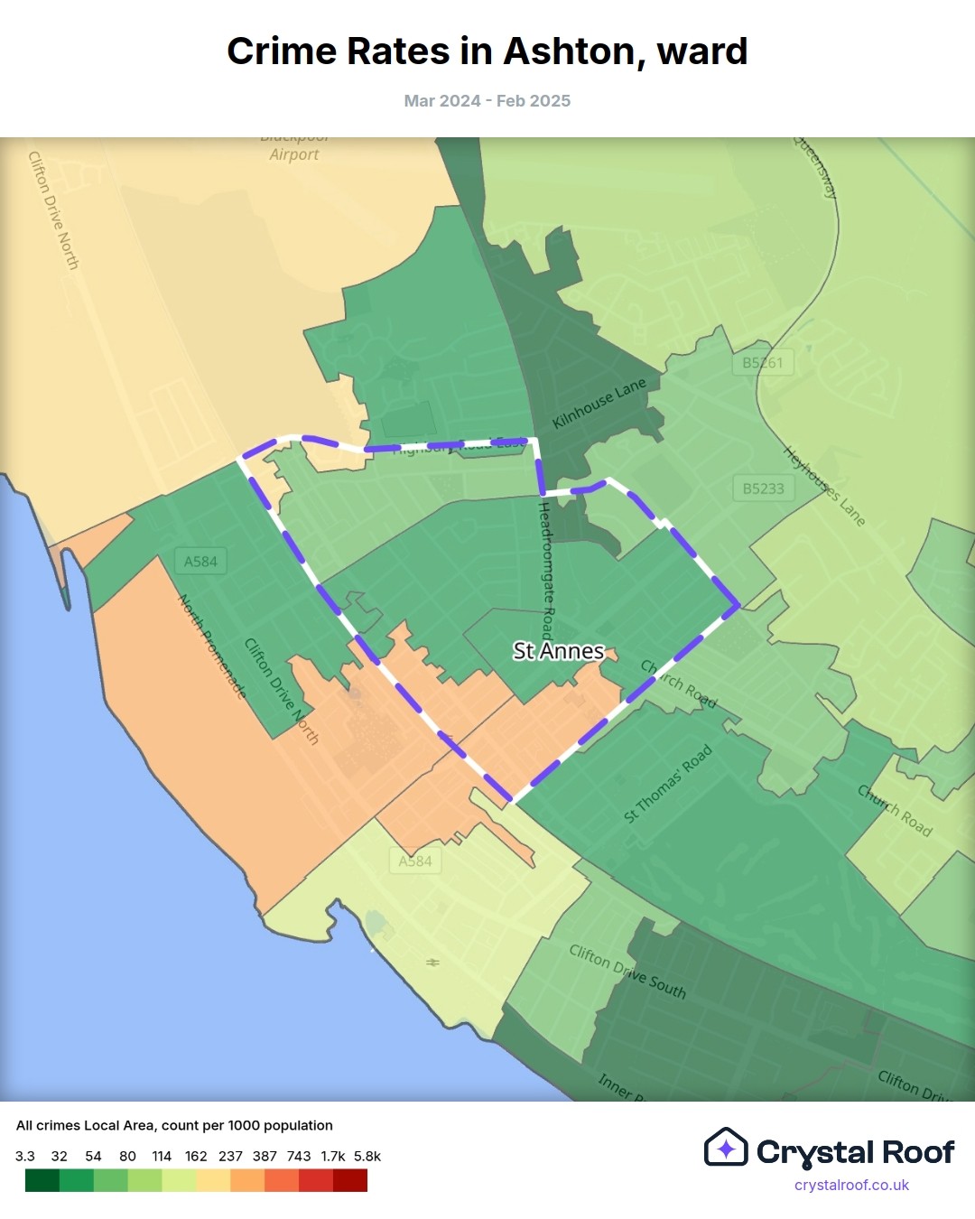 Ashton, (ward) includes areas with the following crime ratings (see map):