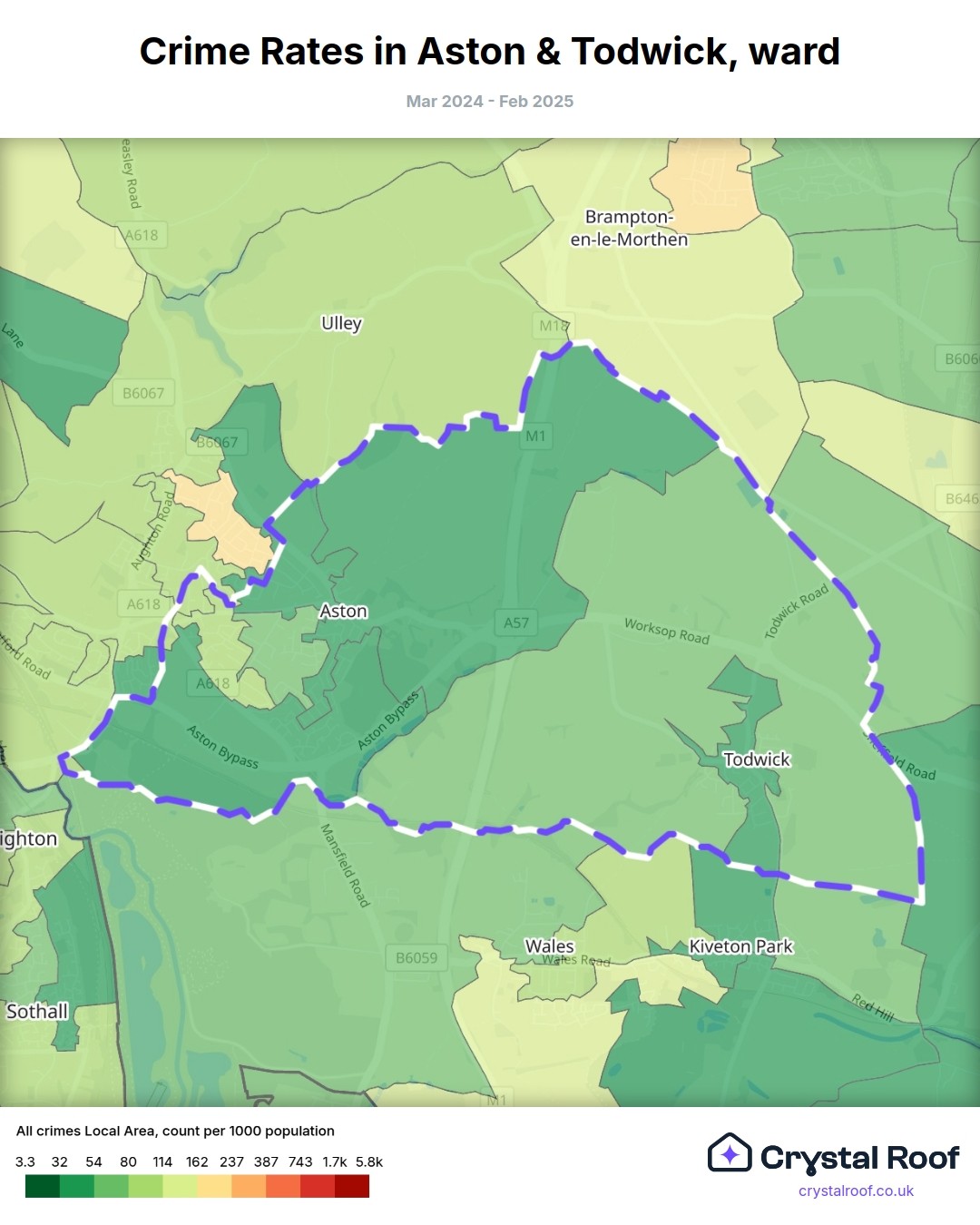 Aston & Todwick, (ward) includes areas with the following crime ratings (see map):
