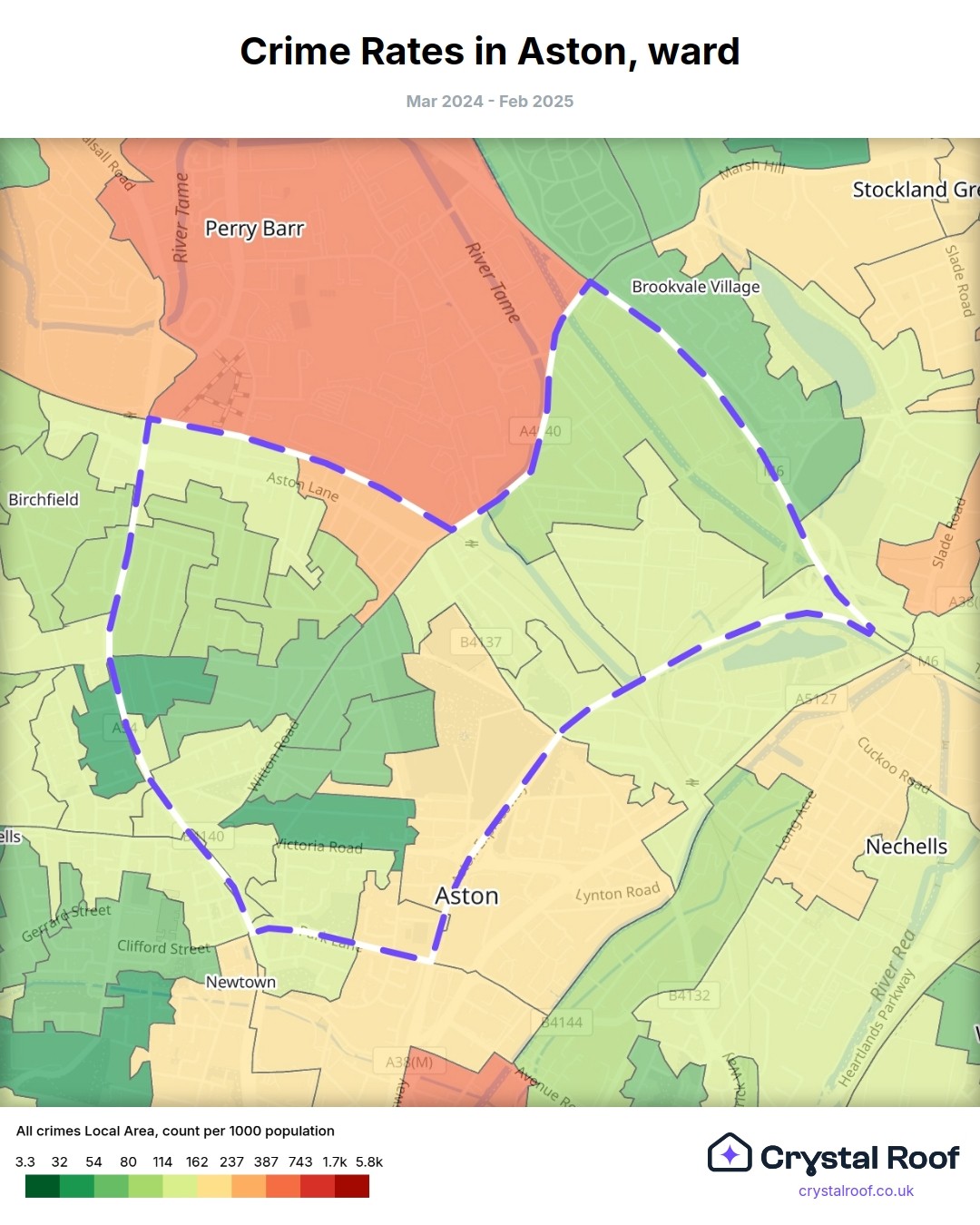 Aston, (ward) includes areas with the following crime ratings (see map):