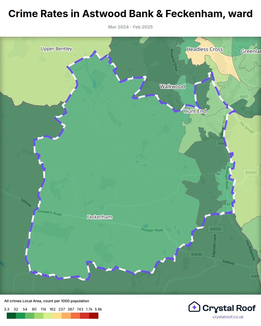 Astwood Bank & Feckenham, (ward) includes areas with the following crime ratings (see map):