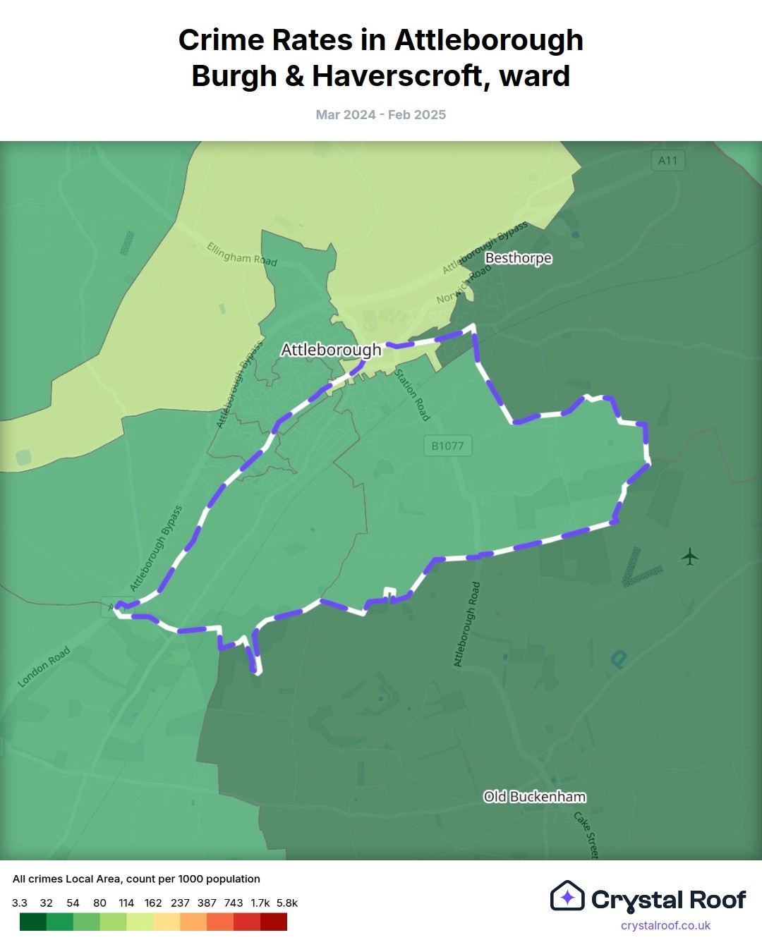 Attleborough Burgh & Haverscroft, (ward) includes areas with the following crime ratings (see map):