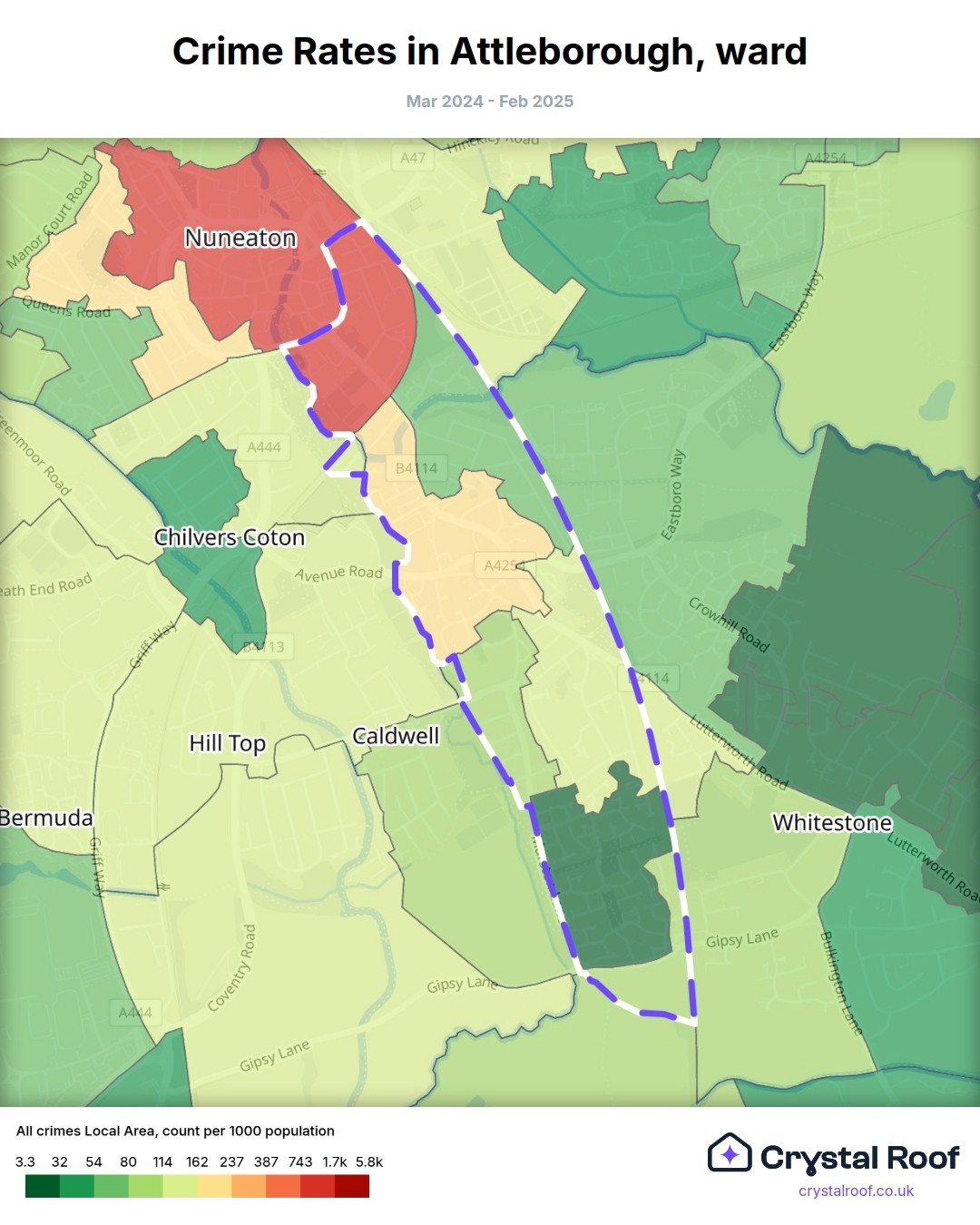 Attleborough, (ward) includes areas with the following crime ratings (see map):