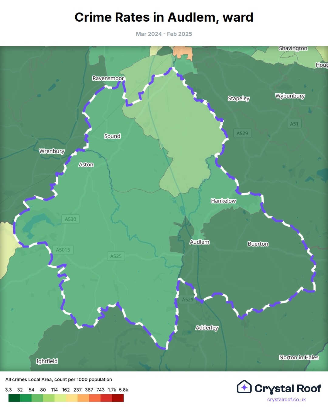 Audlem, (ward) includes areas with the following crime ratings (see map):