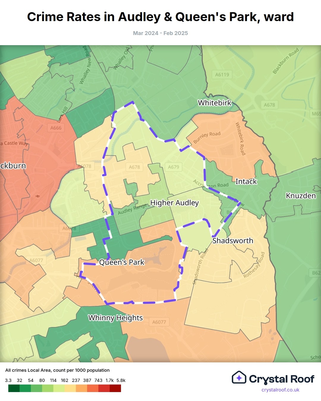 Audley & Queen's Park, (ward) includes areas with the following crime ratings (see map):