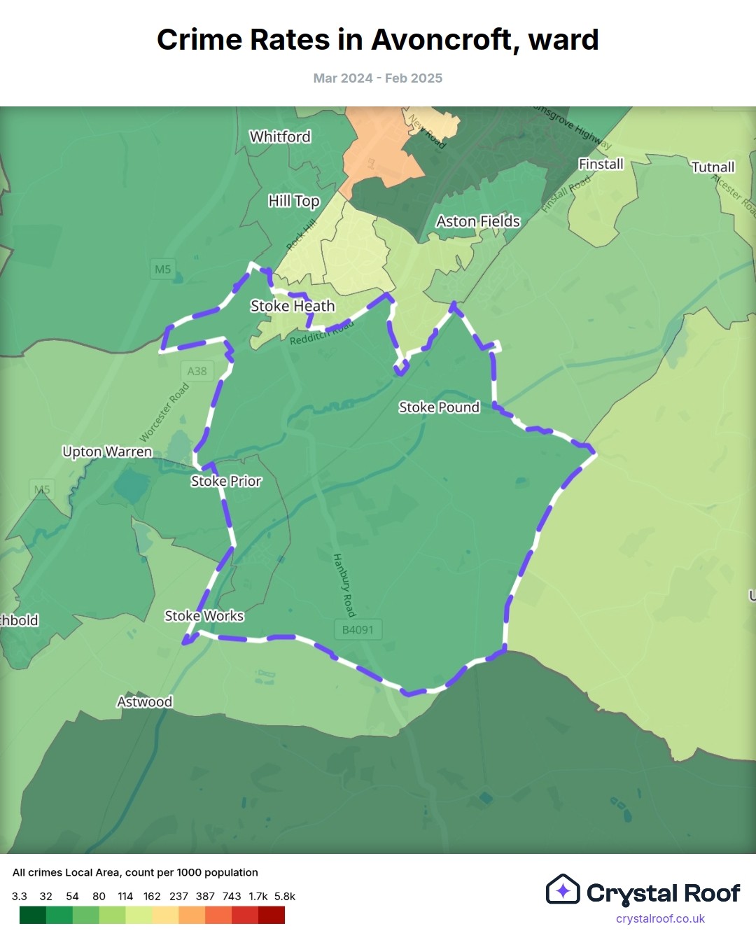 Avoncroft, (ward) includes areas with the following crime ratings (see map):
