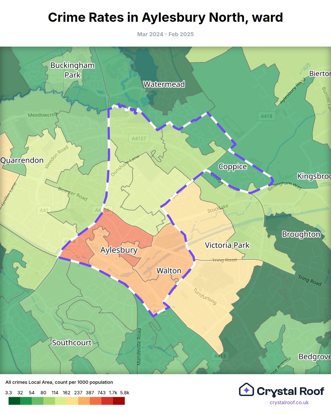 Aylesbury North, (ward) includes areas with the following crime ratings (see map):