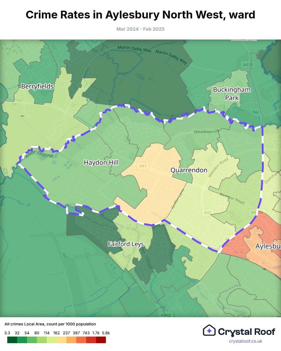 Aylesbury North West, (ward) includes areas with the following crime ratings (see map):