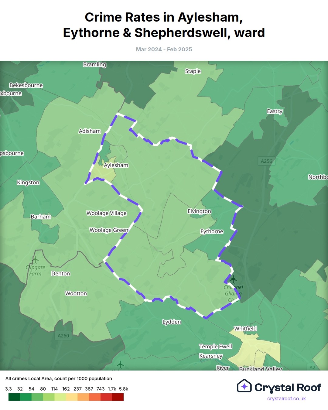 Aylesham, Eythorne & Shepherdswell, (ward) includes areas with the following crime ratings (see map):