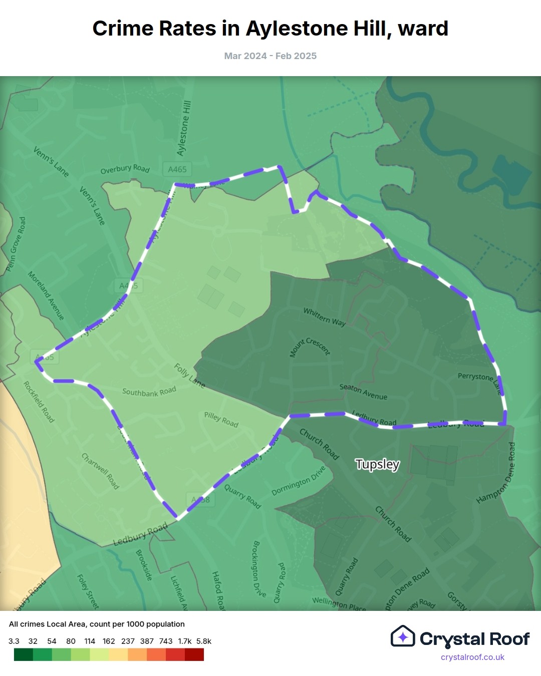 Aylestone Hill, (ward) includes areas with the following crime ratings (see map):