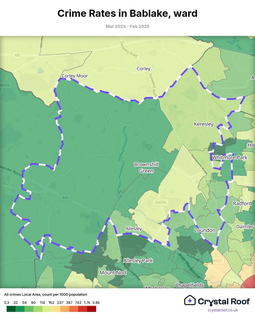 Bablake, (ward) includes areas with the following crime ratings (see map):