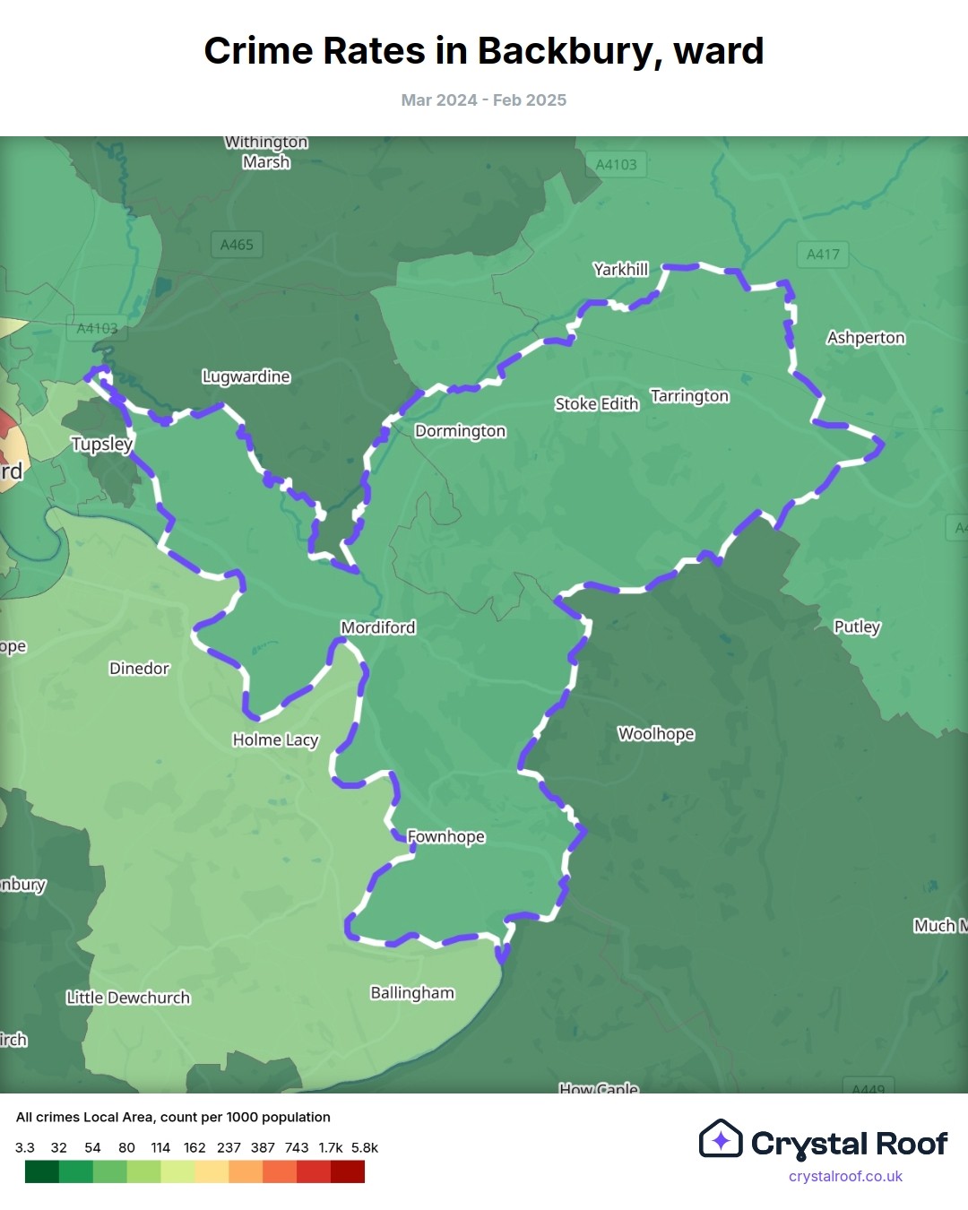 Backbury, (ward) includes areas with the following crime ratings (see map):
