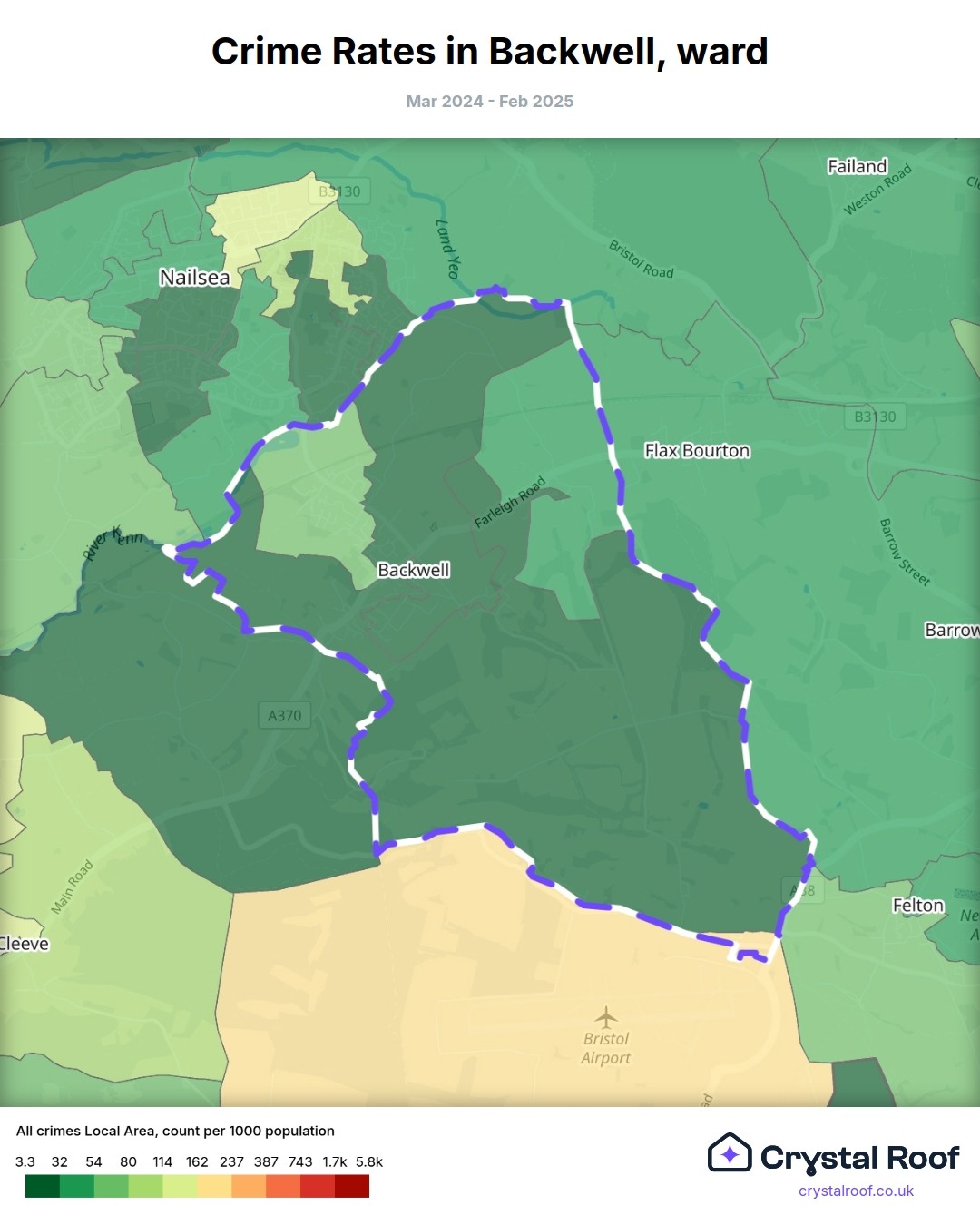Backwell, (ward) includes areas with the following crime ratings (see map):