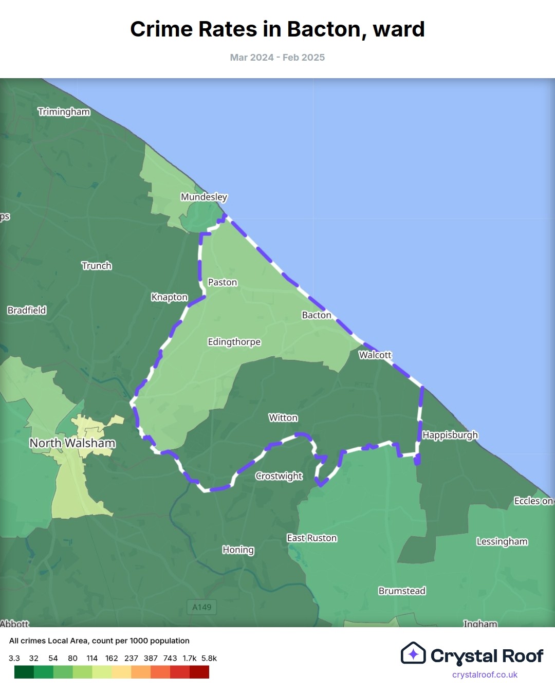 Bacton, (ward) includes areas with the following crime ratings (see map):