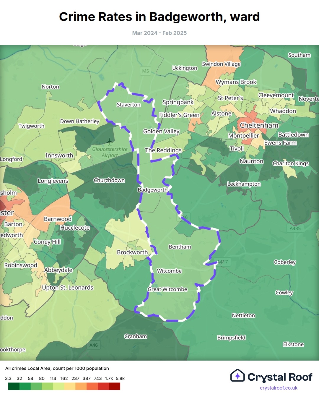Badgeworth, (ward) includes areas with the following crime ratings (see map):
