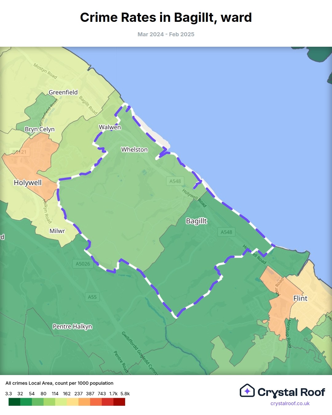 Bagillt, (ward) includes areas with the following crime ratings (see map):