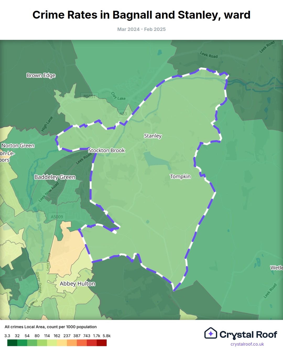 Bagnall and Stanley, (ward) includes areas with the following crime ratings (see map):