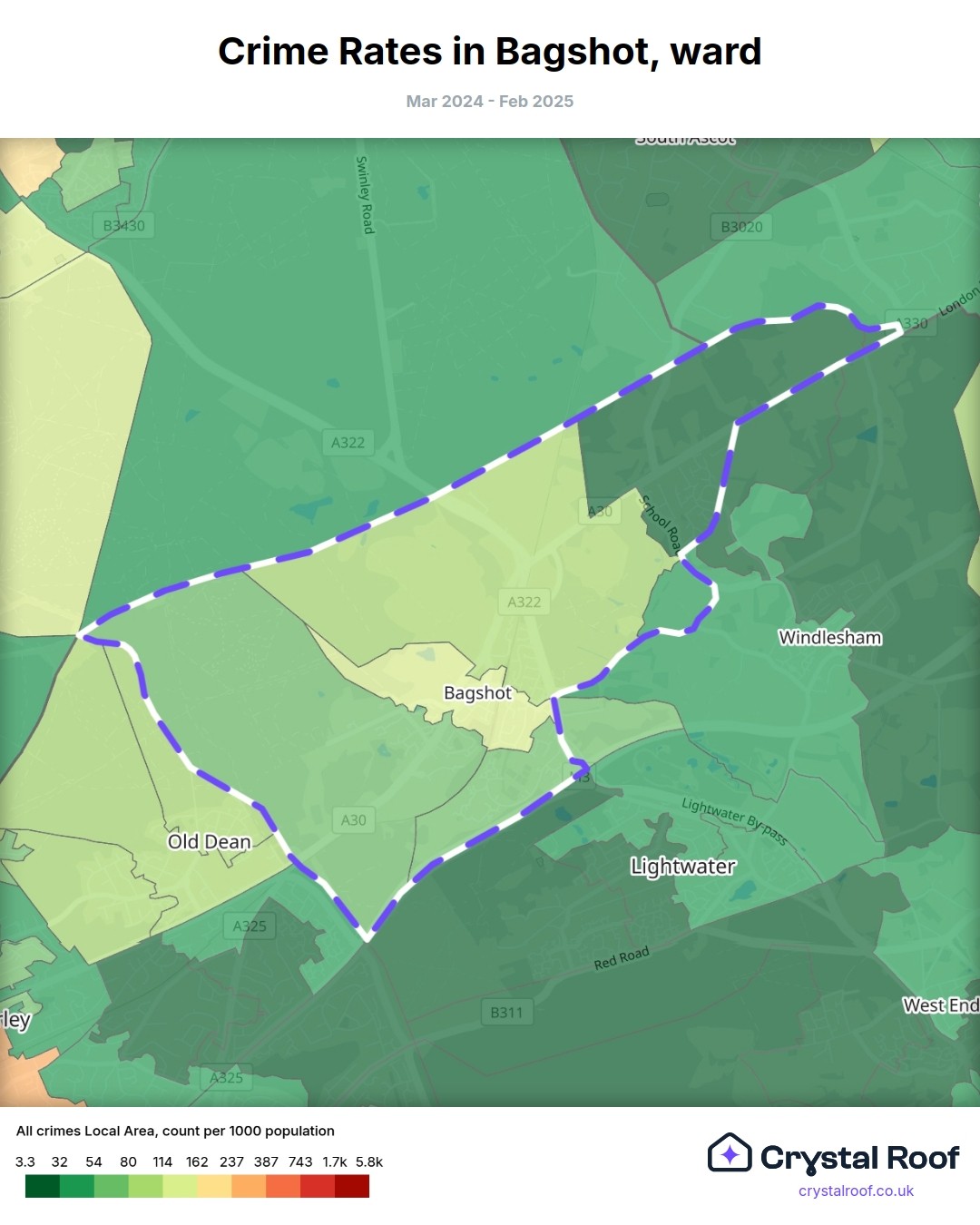 Bagshot, (ward) includes areas with the following crime ratings (see map):