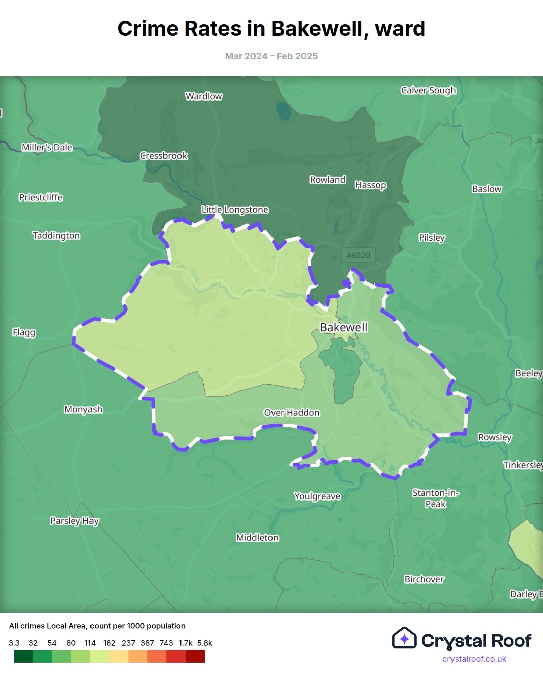 Bakewell, (ward) includes areas with the following crime ratings (see map):