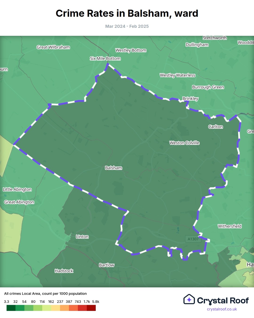 Balsham, (ward) includes areas with the following crime ratings (see map):
