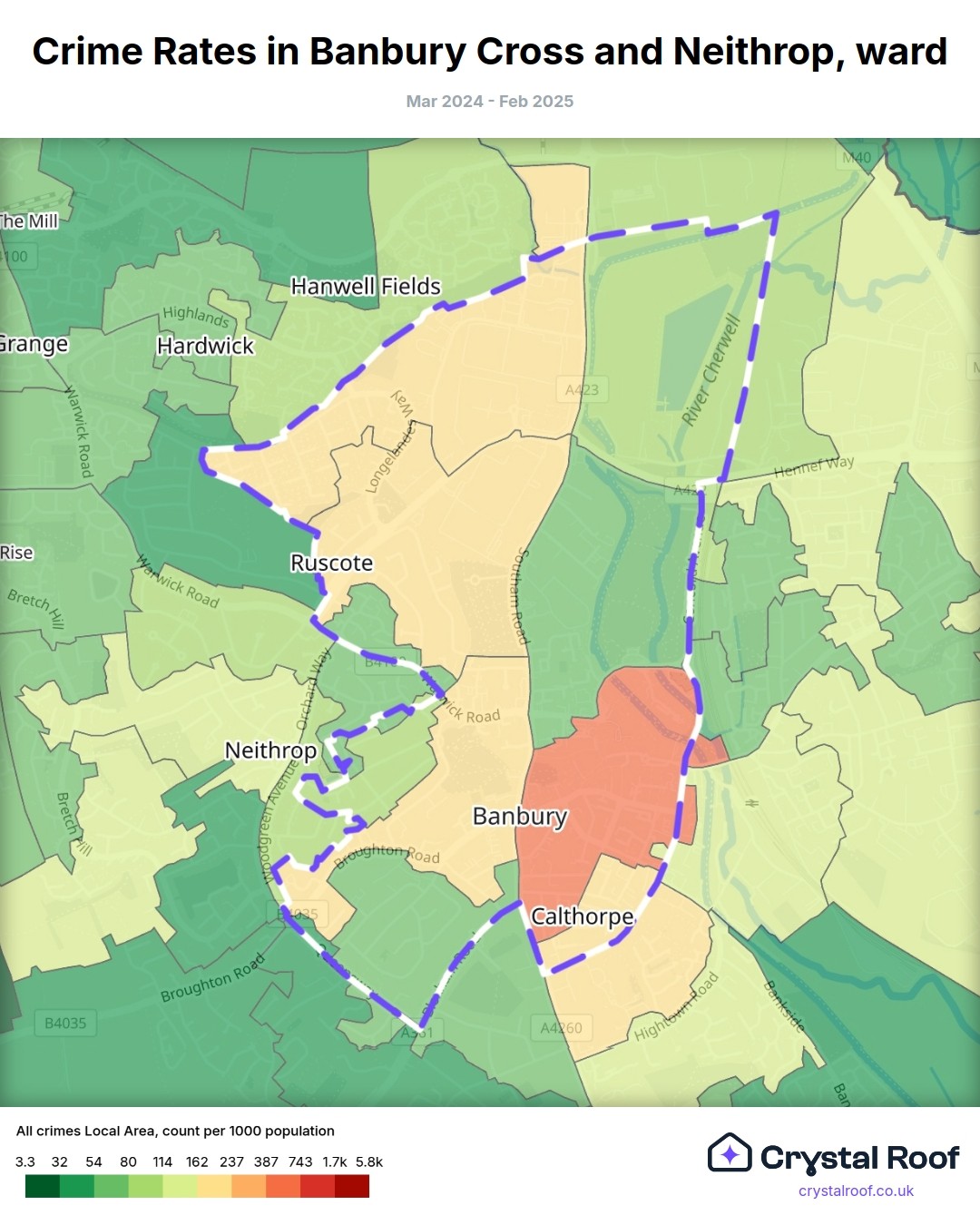 Banbury Cross and Neithrop, (ward) includes areas with the following crime ratings (see map):