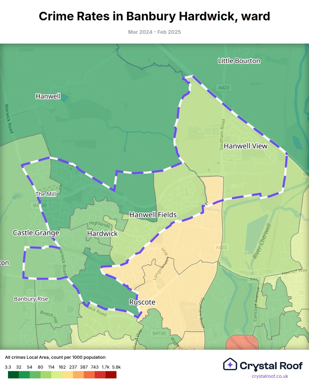 Banbury Hardwick, (ward) includes areas with the following crime ratings (see map):