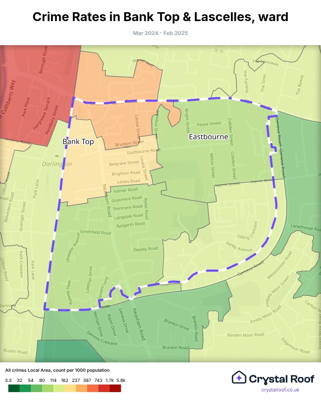 Bank Top & Lascelles, (ward) includes areas with the following crime ratings (see map):