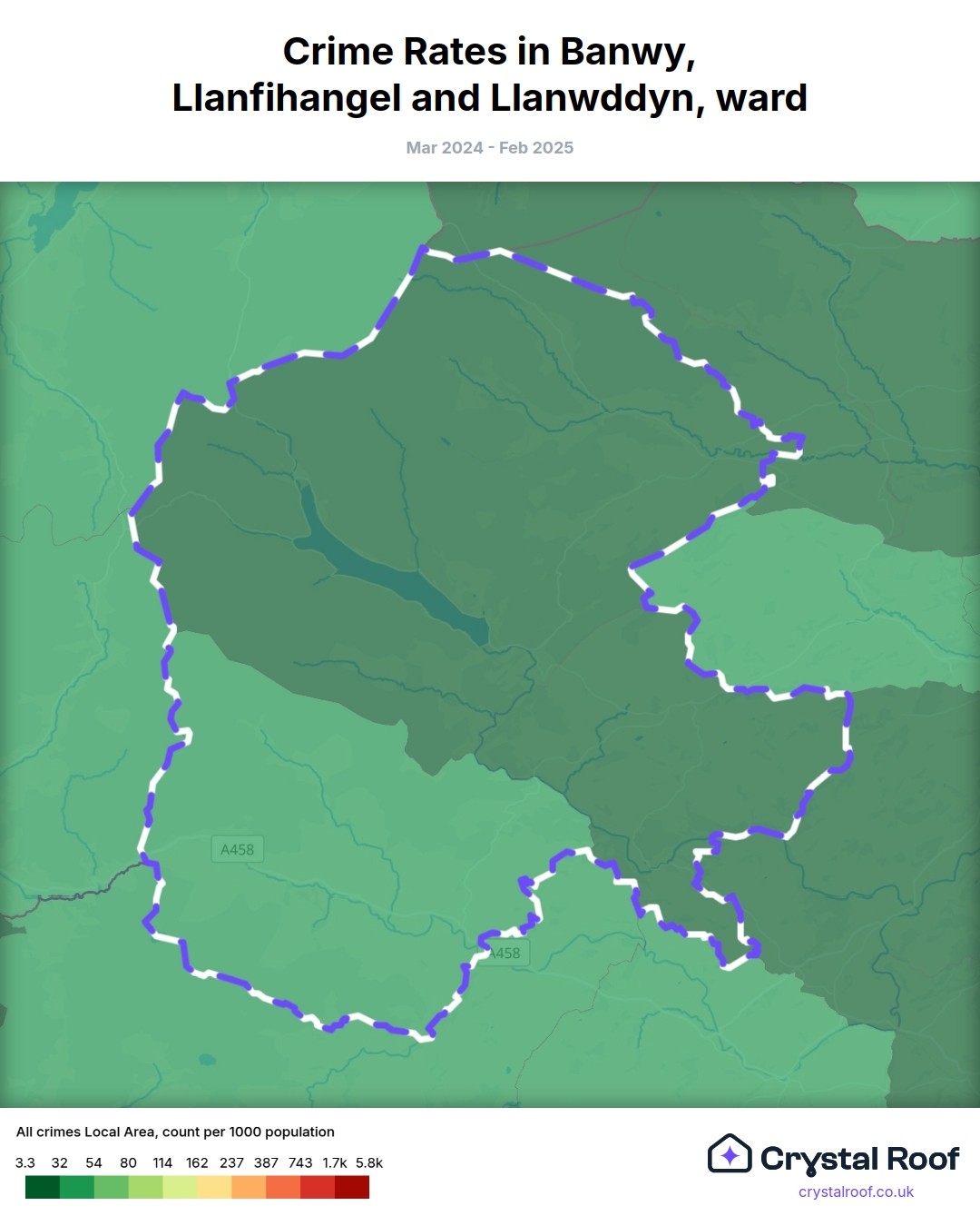 Banwy, Llanfihangel and Llanwddyn, (ward) includes areas with the following crime ratings (see map):