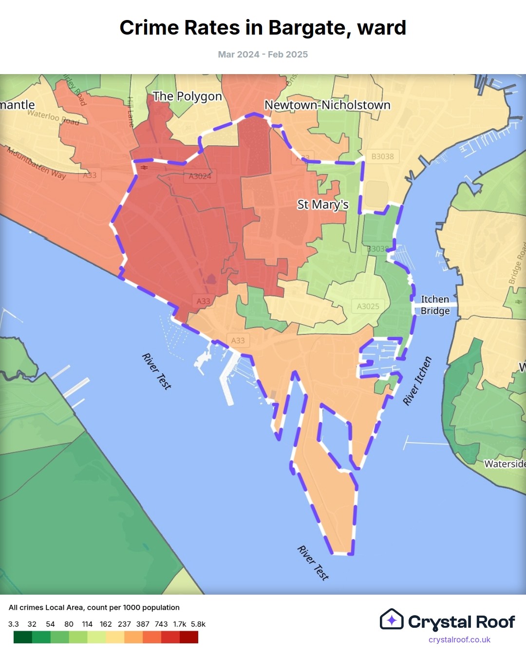 Bargate, (ward) includes areas with the following crime ratings (see map):