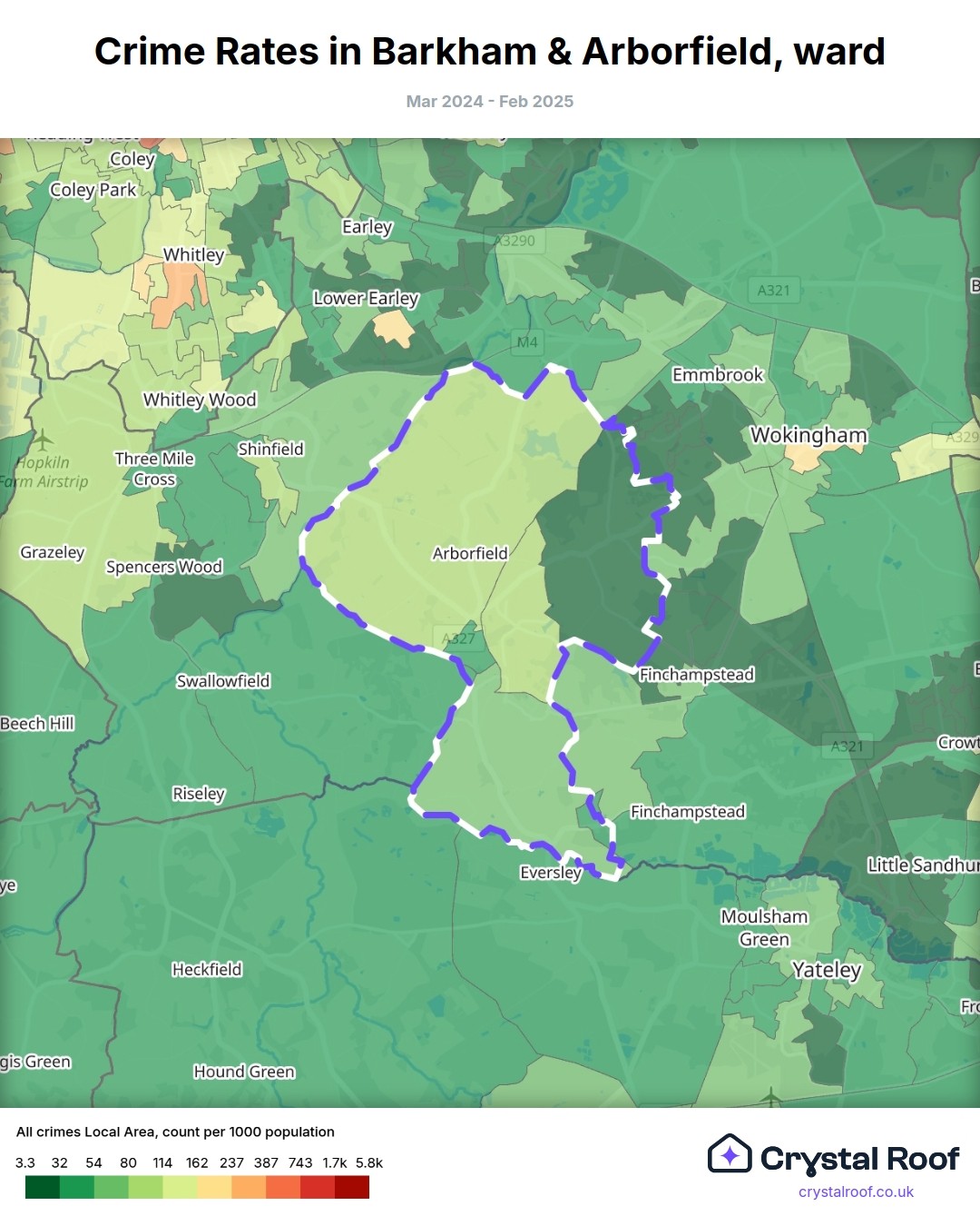 Barkham & Arborfield, (ward) includes areas with the following crime ratings (see map):