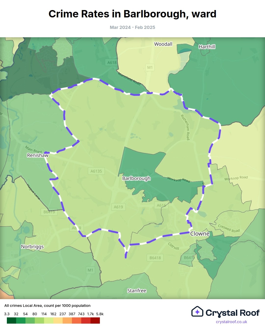 Barlborough, (ward) includes areas with the following crime ratings (see map):