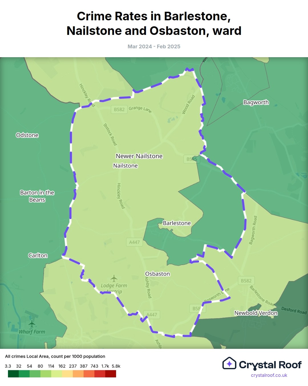 Barlestone, Nailstone and Osbaston, (ward) includes areas with the following crime ratings (see map):
