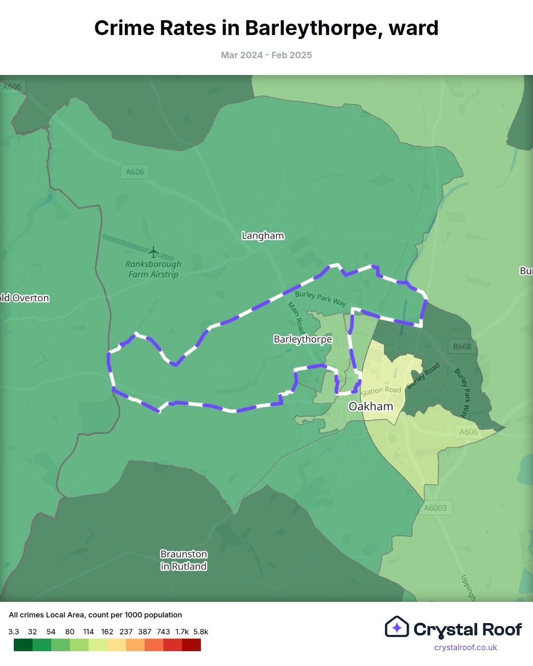 Barleythorpe, (ward) includes areas with the following crime ratings (see map):