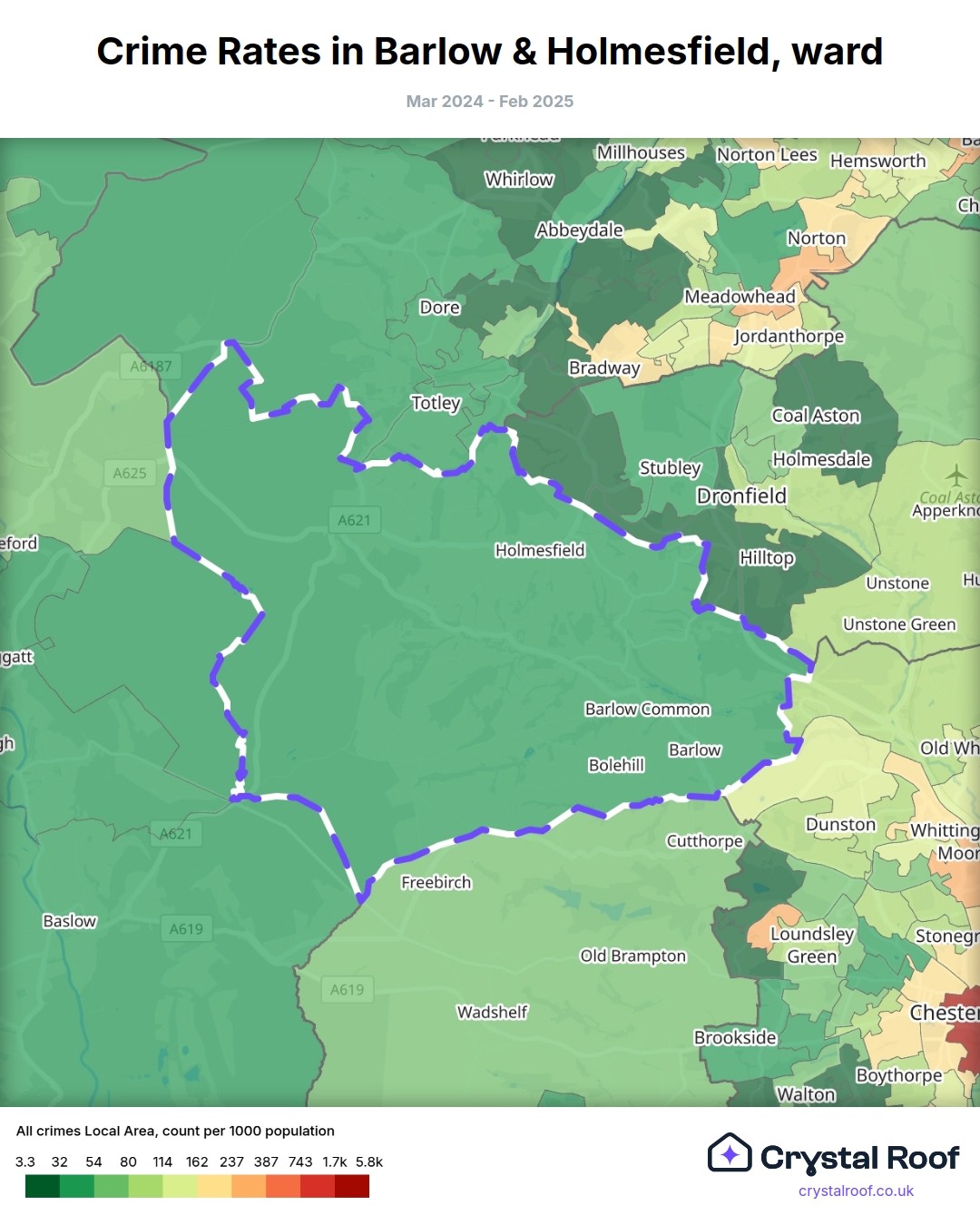 Barlow & Holmesfield, (ward) includes areas with the following crime ratings (see map):