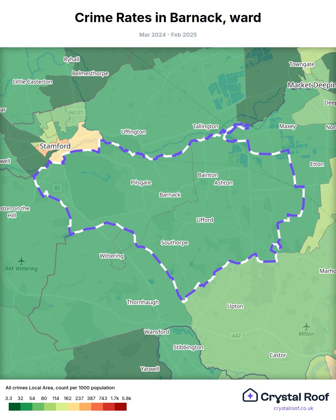 Barnack, (ward) includes areas with the following crime ratings (see map):